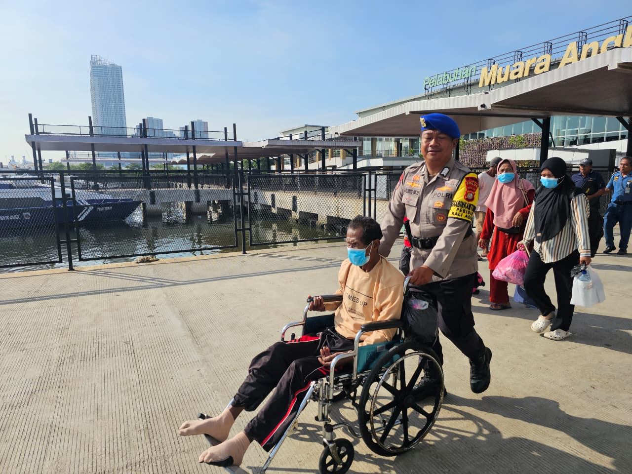 GLOBALMEDIAKENCANA | Jakarta - Personel Ditpolairud Polda Metro Jaya membantu penumpang berkebutuhan khusus saat proses…