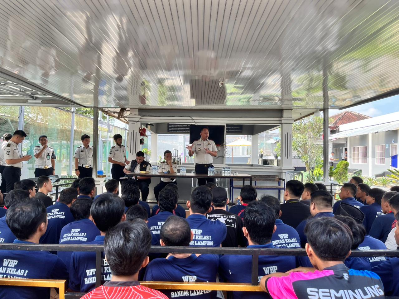 Kegiatan dipimpin langsung oleh Kepala Rutan Kelas I Bandar Lampung, Tri Wahyu Santosa, didampingi Kepala Kesatuan Pengamanan Rutan (Ka. KPR), Brivsan Kartadilaga serta Kepala Sub Seksi Administrasi dan Perawatan (Kasubsi ADPER), Novo Firnando. Dalam arahannya, Kepala Rutan menegaskan pentingnya komitmen bersama dalam menciptakan lingkungan rutan yang bersih dari HALINAR (Handphone, Pungutan Liar, dan Narkoba).